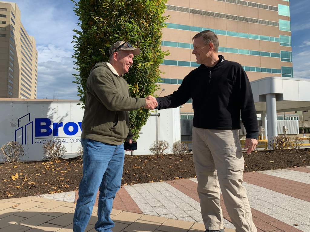 John suggested we “recreate” the moment when Raccoon John Smith and Barton Stone gave each other the right hand of fellowship at the spot where they did.